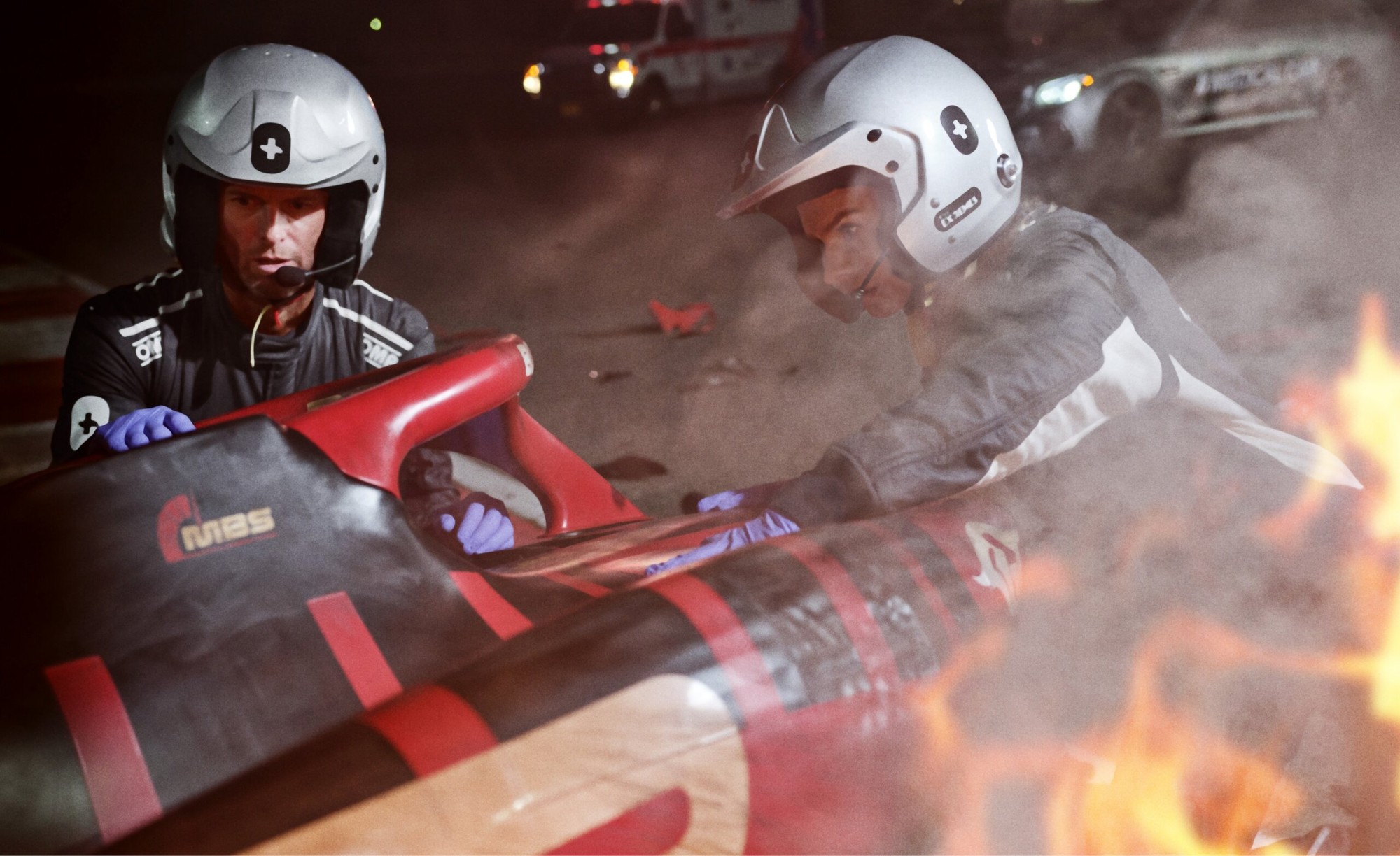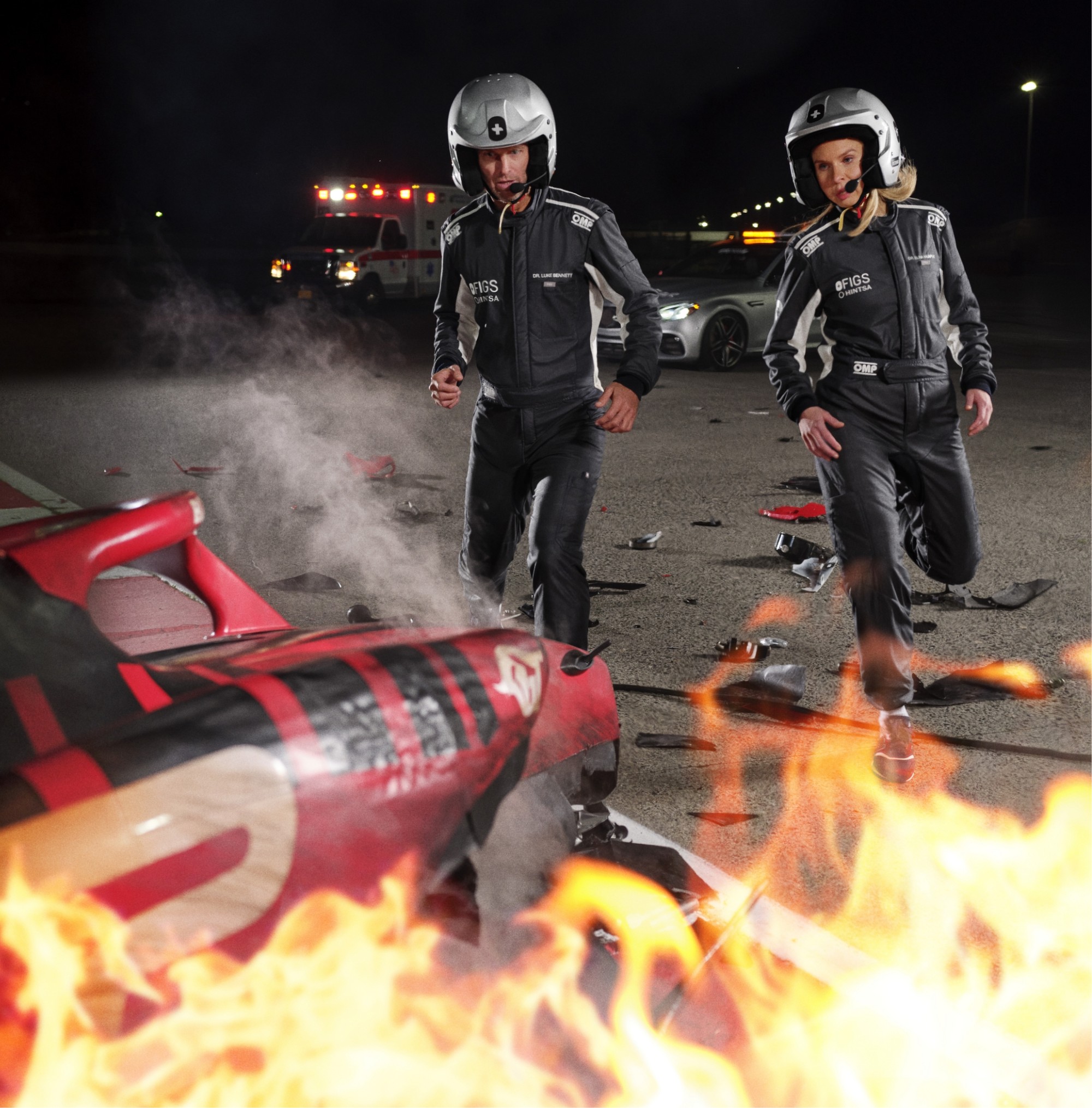 We would tell this story through a VO script read by Dr. Luke, flashback sequences to their training, the moment of the crash and subsequent fire, and the actions they take to save the life of the driver in the burning vehicle.