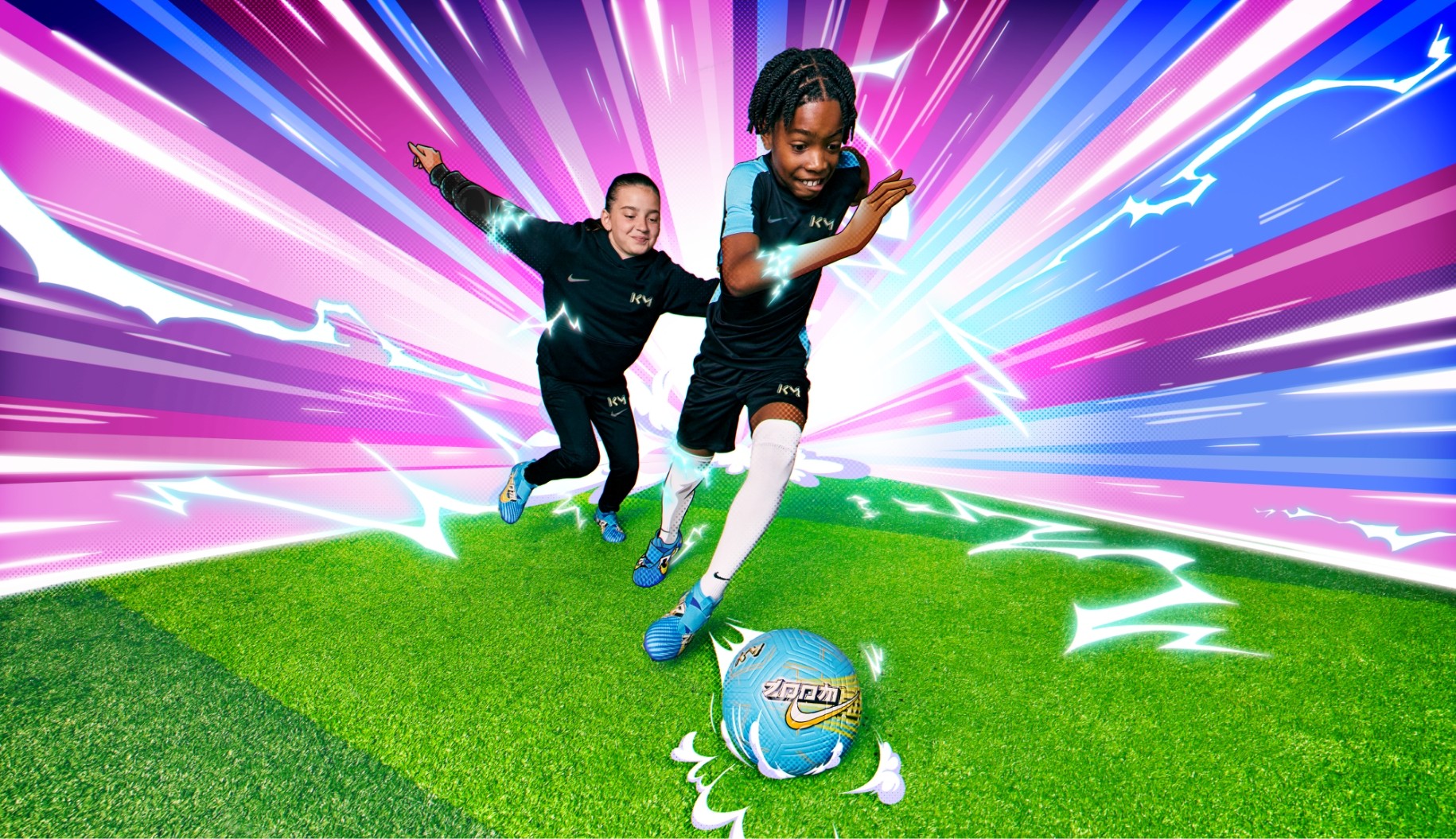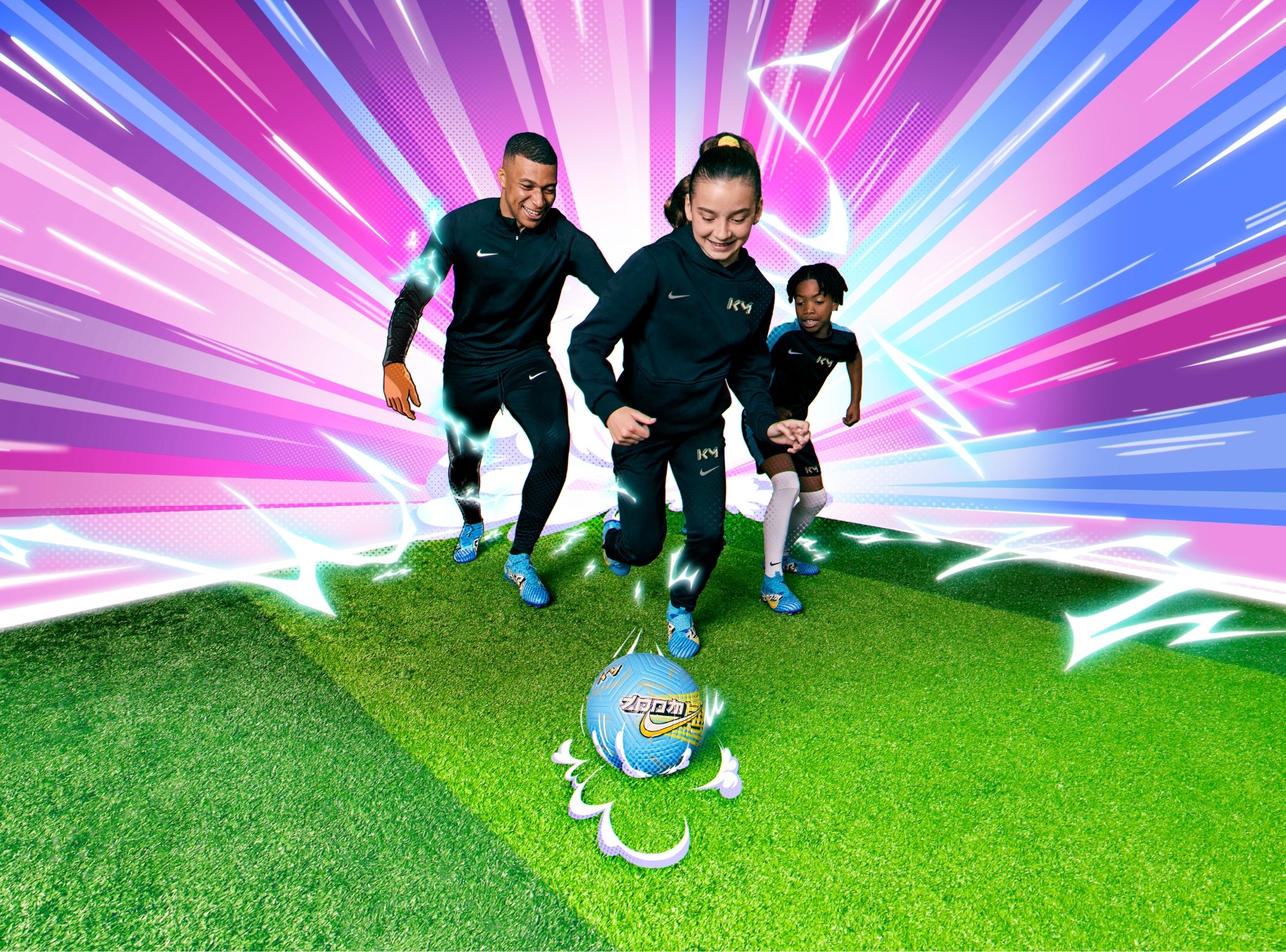 We wanted to create a fun and irreverent campaign that would highlight Mbappé’s carefree nature and introduce the design inspiration for his signature boot. And when you’re talking Mbappé and the Mercurial, you can’t forget the speed. In every asset, from stills to video, we featured this element of transformation, when Mbappé’s speed takes him from real to unreal. For our videos, we created an anime-inspired bumper to reference the design and end each asset with a performance-centric sign off
